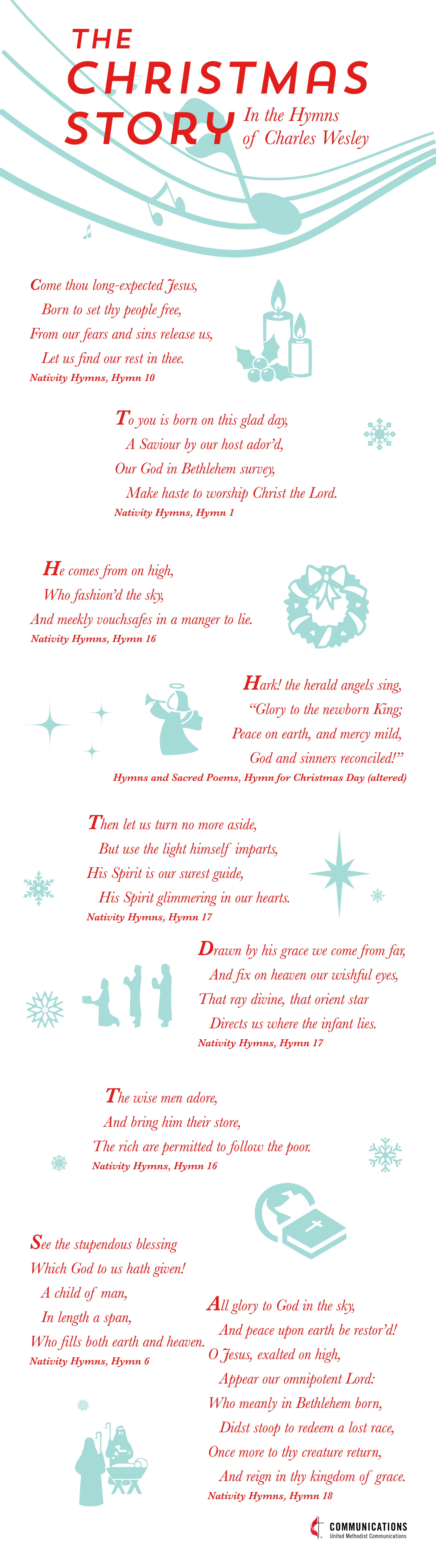 Christmas is a time for singing! Carols are played in stores, 24/7 on some radio stations, and in our homes. During worship in our United Methodist churches, we also sing some special songs for the season, a couple of which were written by Charles Wesley, the poet-theologian of the Methodist movement.