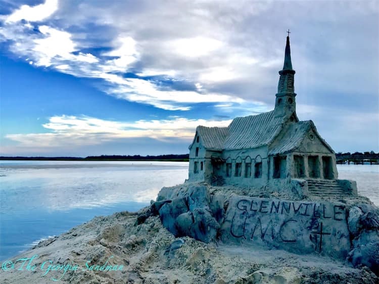 Mulligan volvió a construir el campanario e hizo algunas reparaciones antes de tomar las fotos de la versión de arena de su iglesia, la cual publicó en The Georgia Sandman Facebook page.
