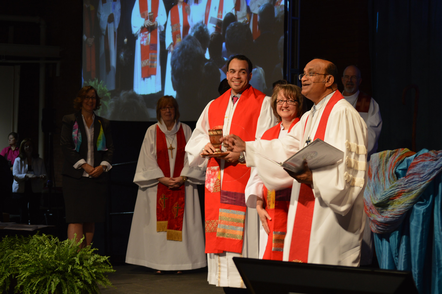 Une des premières choses que beaucoup de nouveaux membres du clergé font après leur ordination est d'aider à servir la communion pendant le culte d'adoration. Photo de Beth DiCocco, Conférence de la Nouvelle-Angleterre.
