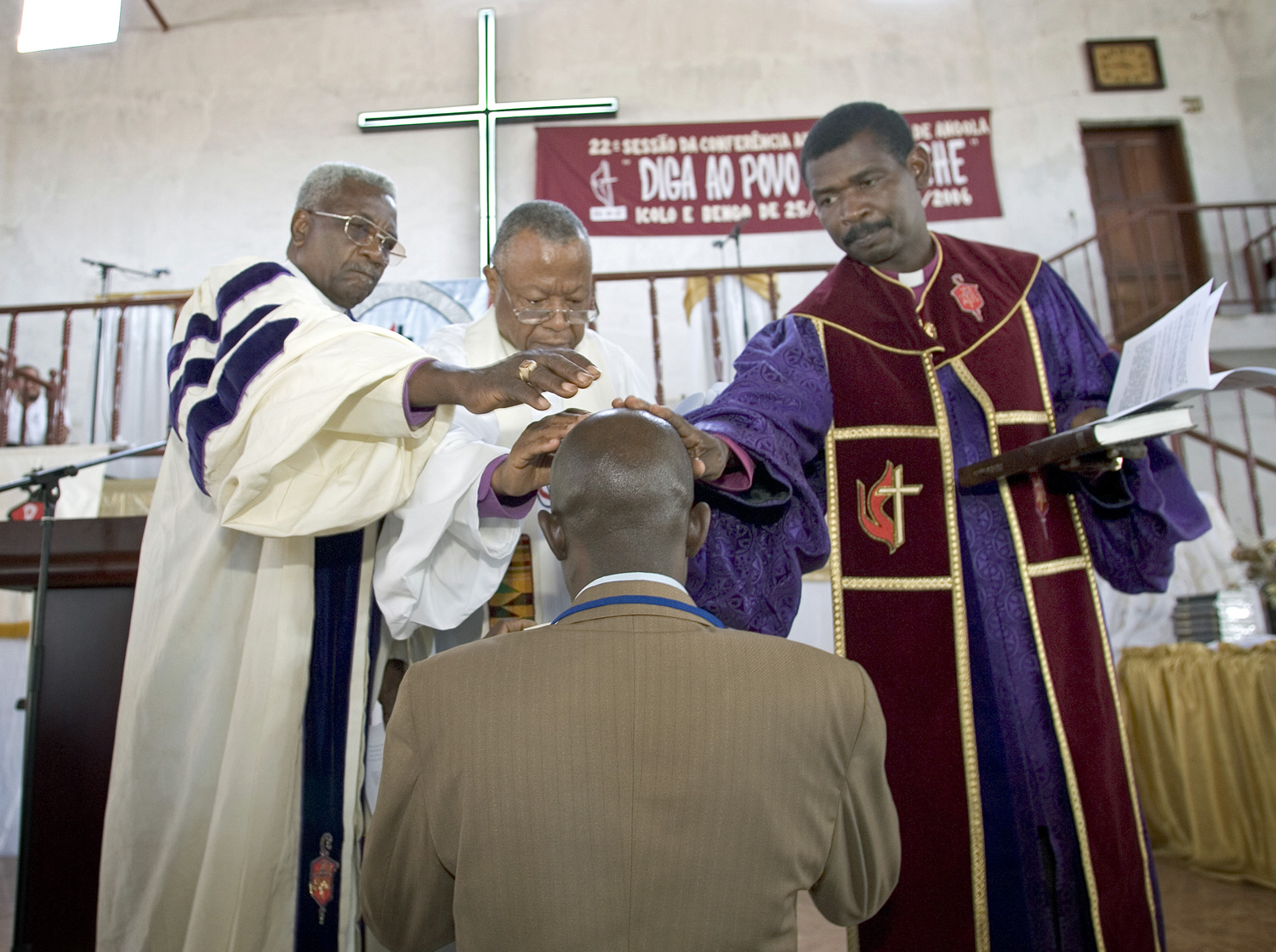 Le clergé méthodiste uni est prié par son évêque (comme ceux illustrés dans la Conférence annuelle de l'Angola occidental en 2006), habilités par le Saint-Esprit et autorisés par l'église pour leur vie et leur travail. Photo de fichier par Mike DuBose, United Methodist Communications.
